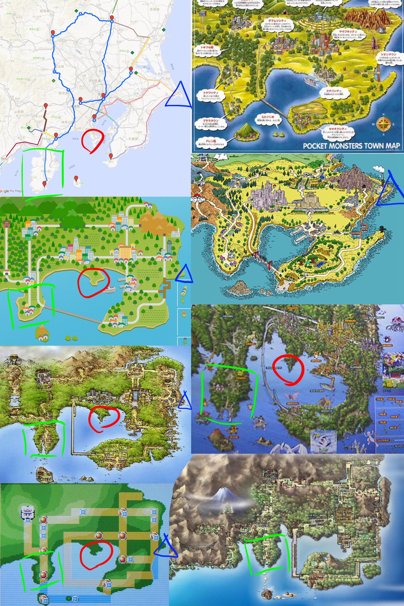 たかさおじさん カントータウンマップ 各世代 初代 金銀 Frlg Frlgゲーム Hgss 10周年ポスター 20周年壁紙 の伊豆半島 三浦半島 銚子の描き方 図からいうとクチバ 千葉だけど 豪華客船 横浜 クチバジム 横須賀なイメージは残る